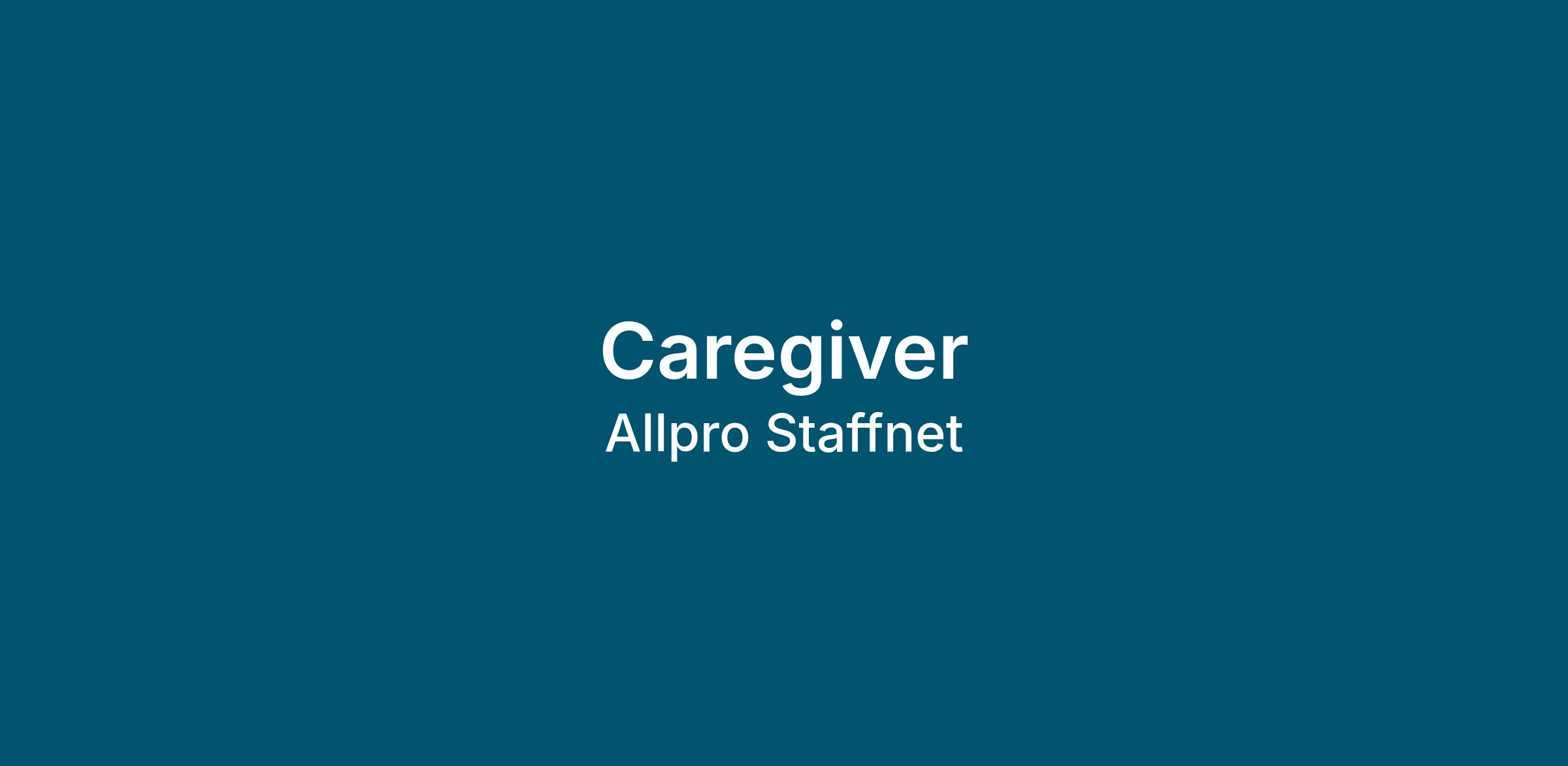 Allpro Staffnet d/b/a Allpro Homecare is looking for a Caregiver to become part of our team and join our mission of providing quality non-medical homecare to our veteran population.