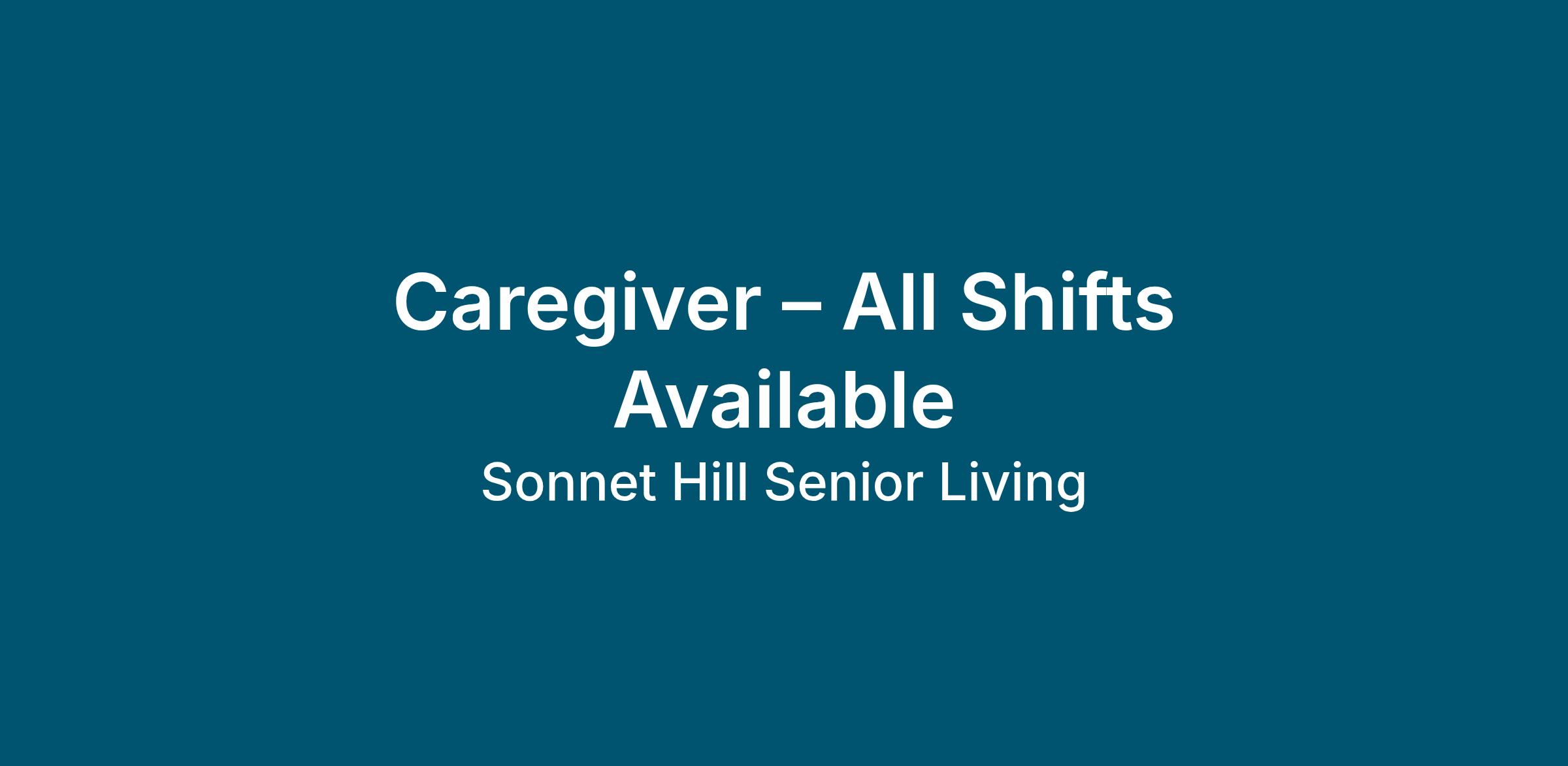 Sonnet Hill Senior Living is an equal opportunity employer. All candidates must be able to pass a criminal background check and a comprehensive reference check.