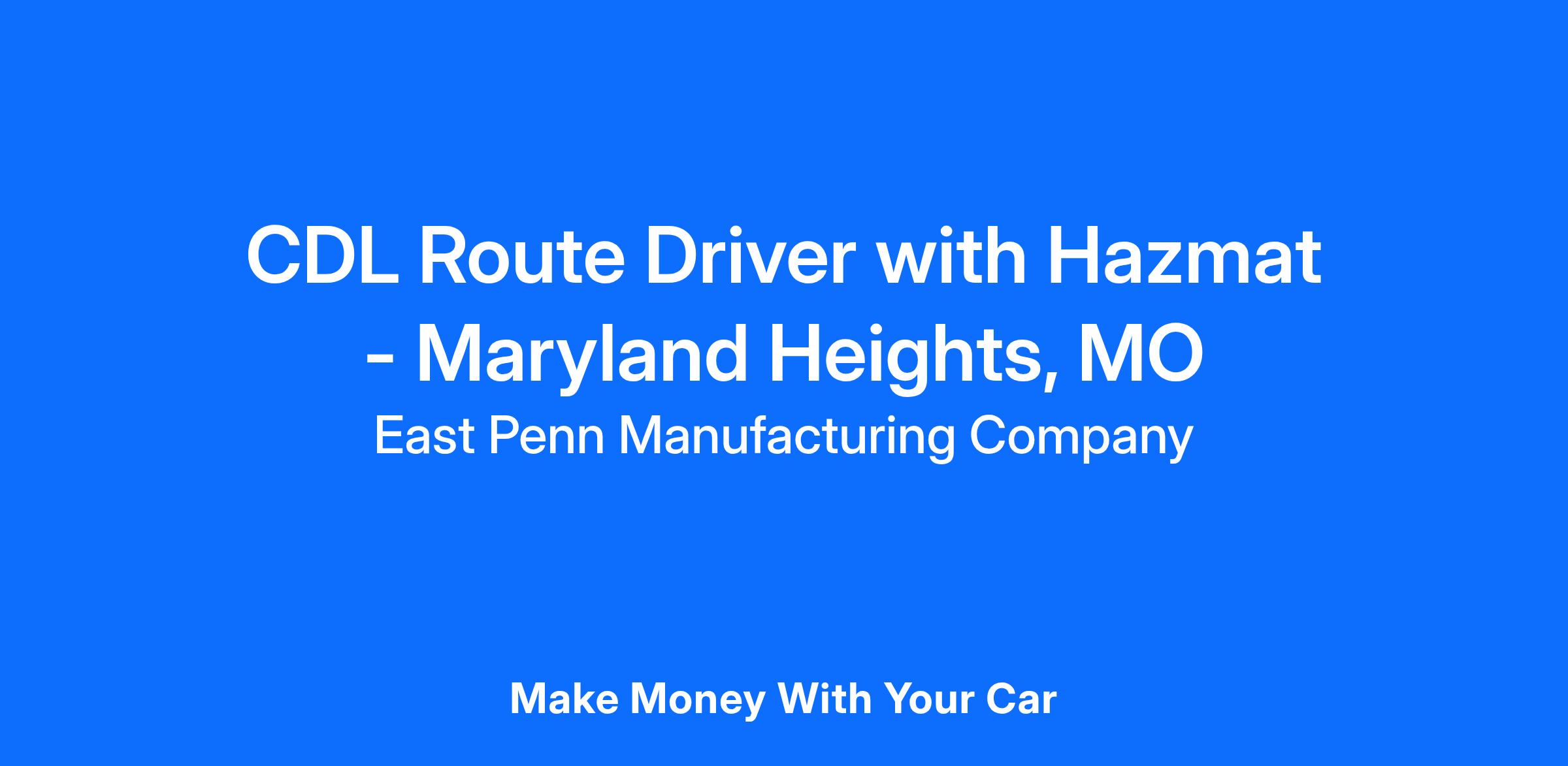 Maryland Heights, Missouri Class A or Class B Route Driver with Hazmat Endorsement