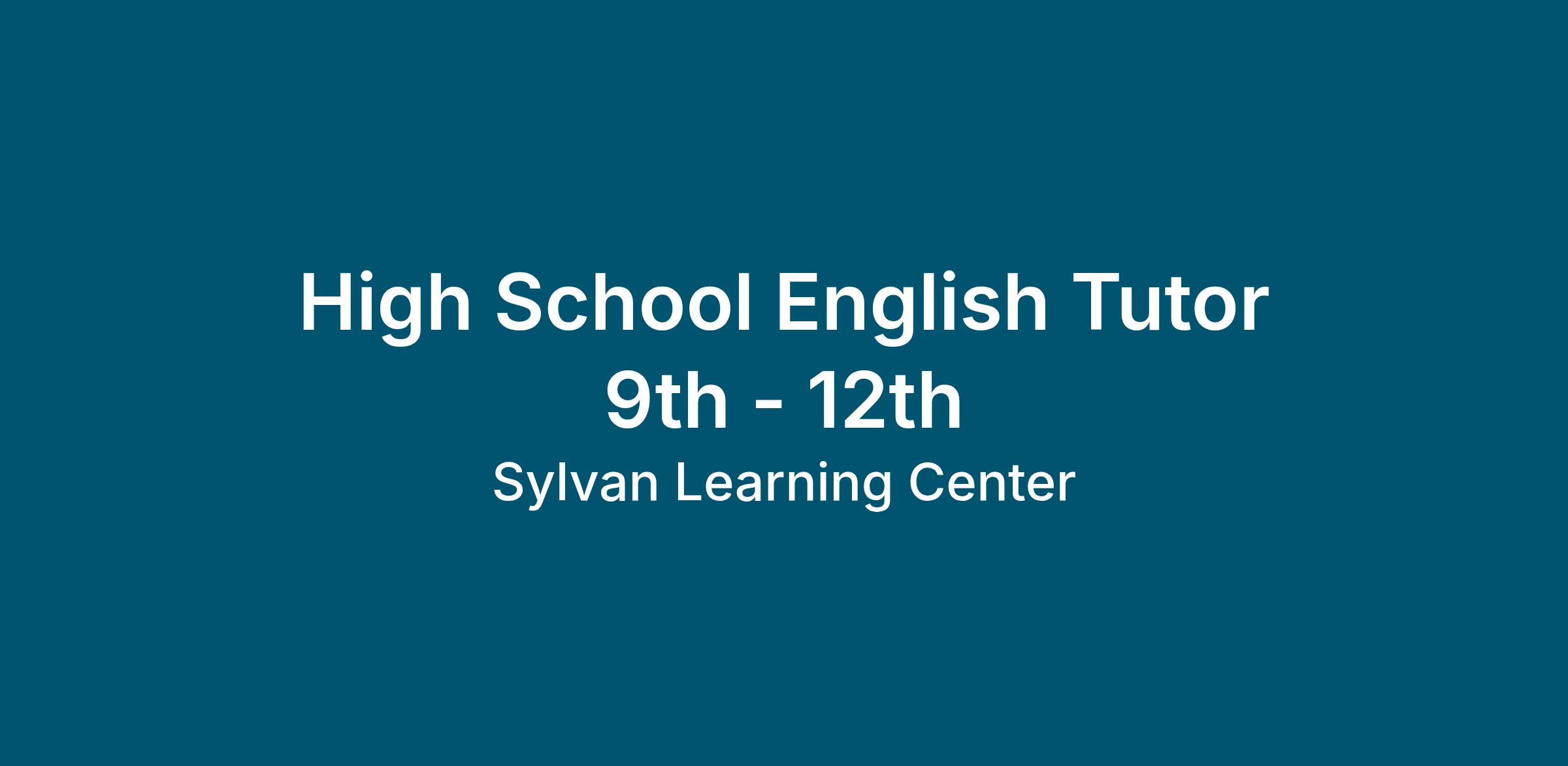 Sylvan Learning Center - High School English Tutor 9th - 12th (Part-Time)