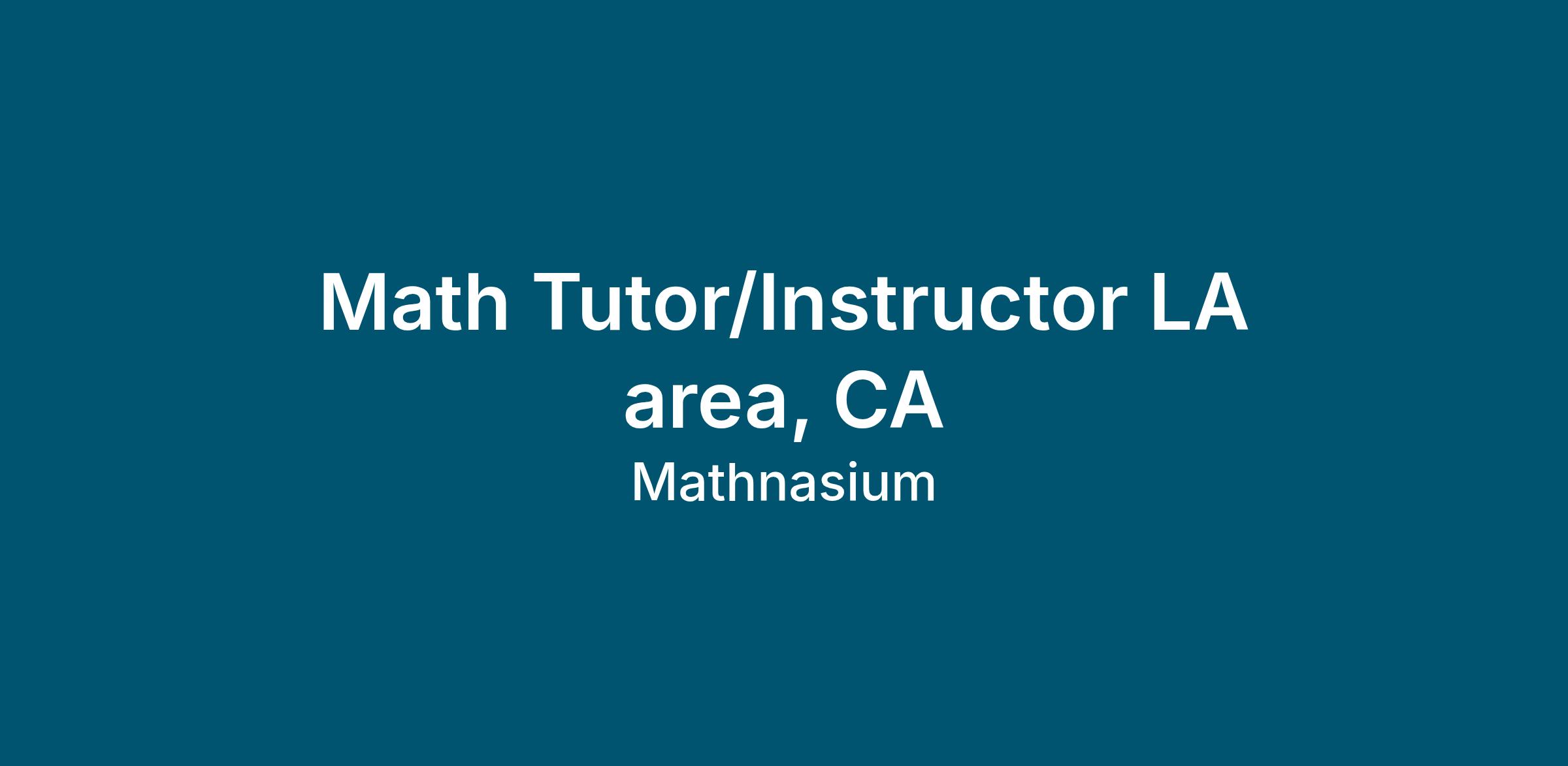 Math Tutor/Instructor LA area, CA