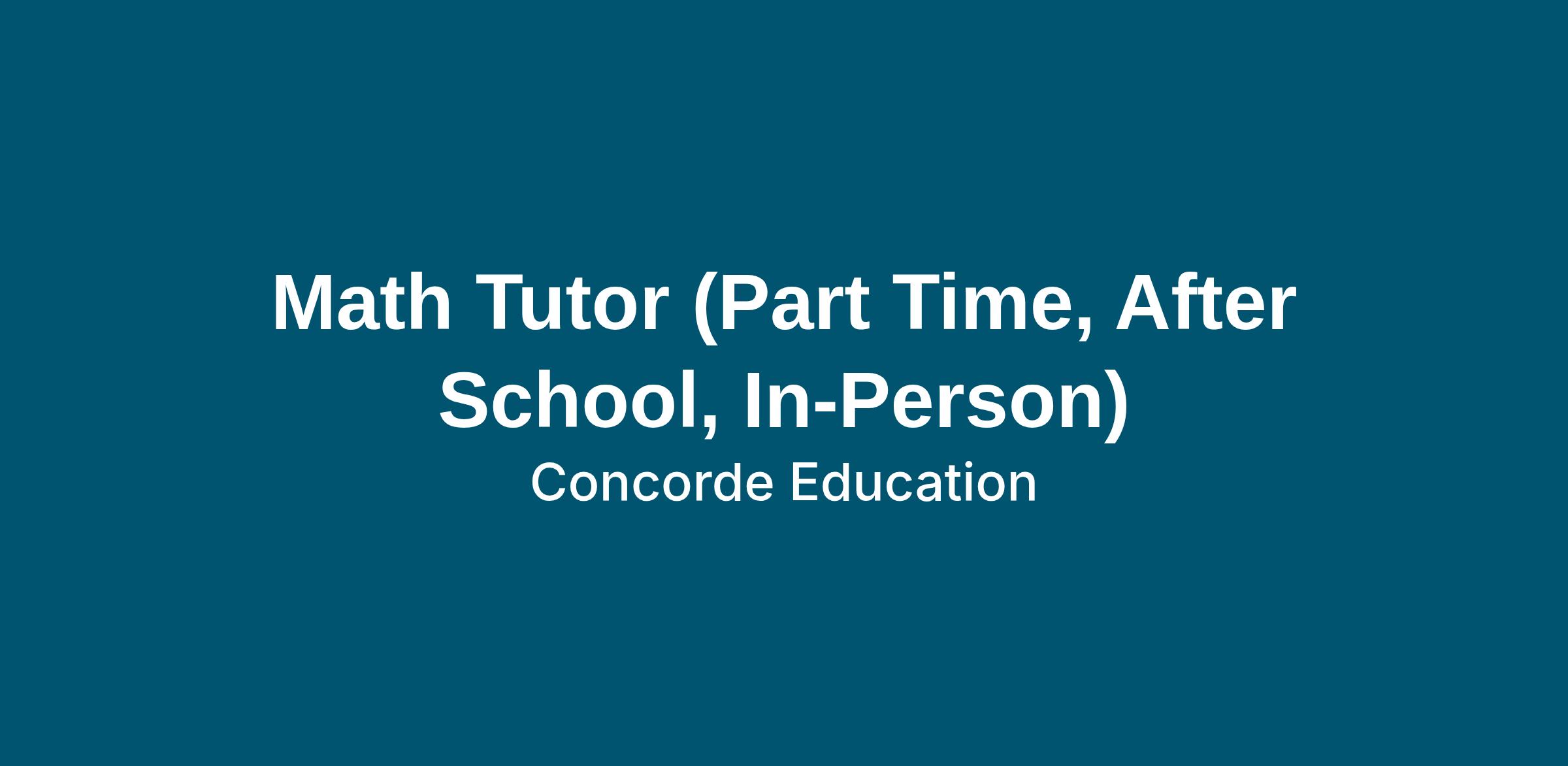 Concorde Education is seeking an engaging, student-centered Math Tutor to provide targeted academic support for students in grades K–12 (grade band varies by assignment). This role focuses on strengthening foundational and grade-level math skills through structured, supportive tutoring sessions aligned to school goals and classroom expectations. Support may include intervention, skill reinforcement, homework assistance, and preparation for assessments, depending on student needs.