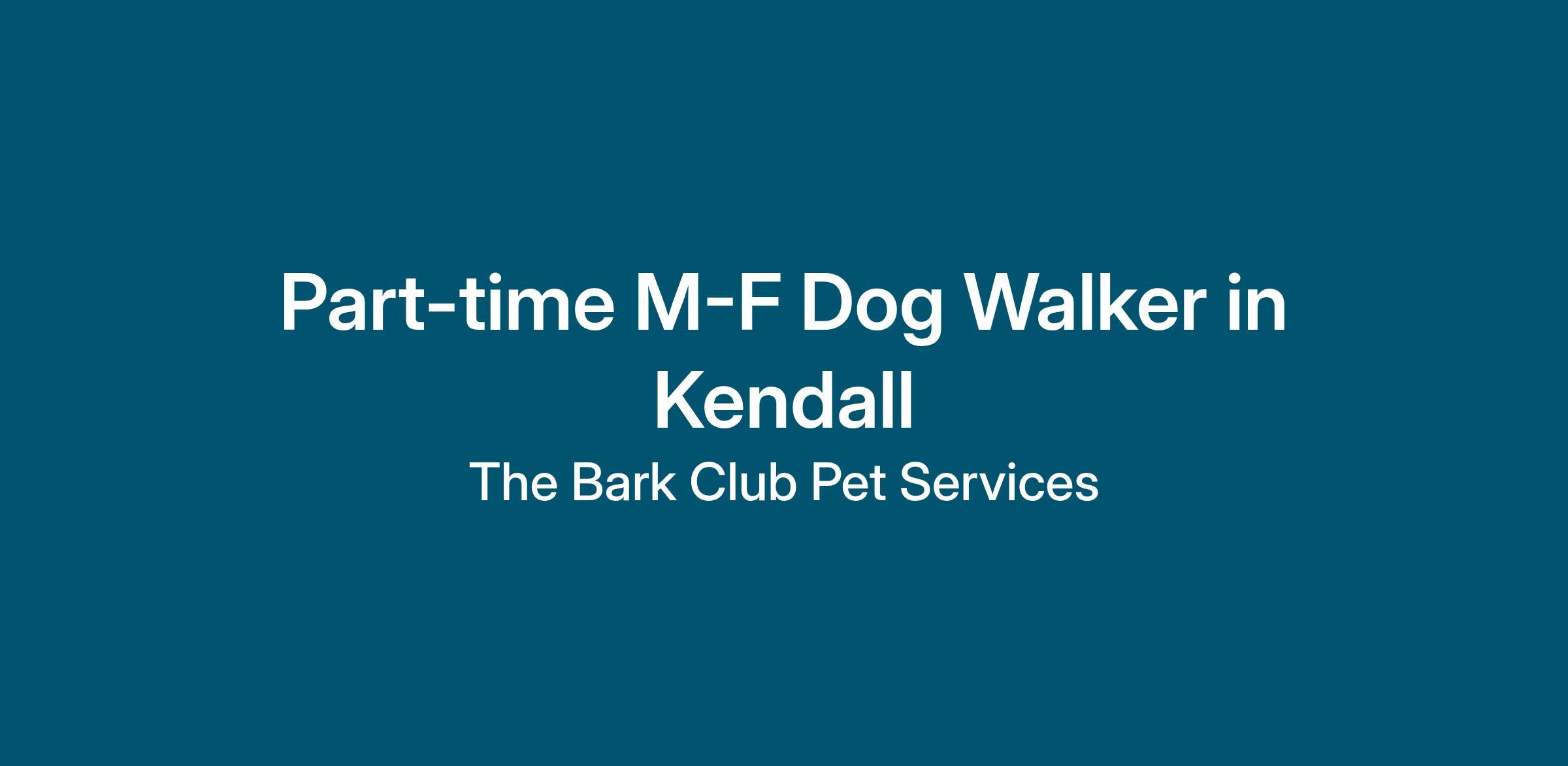 - Schedule: Weekday dog walks (typically 10am–4pm; some days start 8am). Optional evenings 5-8pm and occasional weekends/holidays.