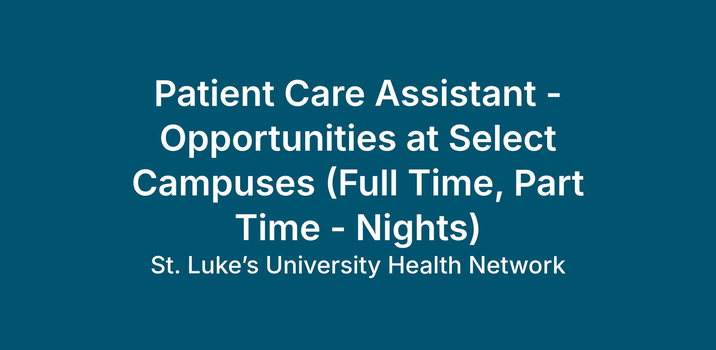Individualized orientation program for all areas. Obtain BLS certification within sixty (60) days of employment or transfer to position. Basic computer skills required. Attend St. Luke’s University Health Network Assistive Personnel and Medical Terminology courses. Positions may prefer related experience.