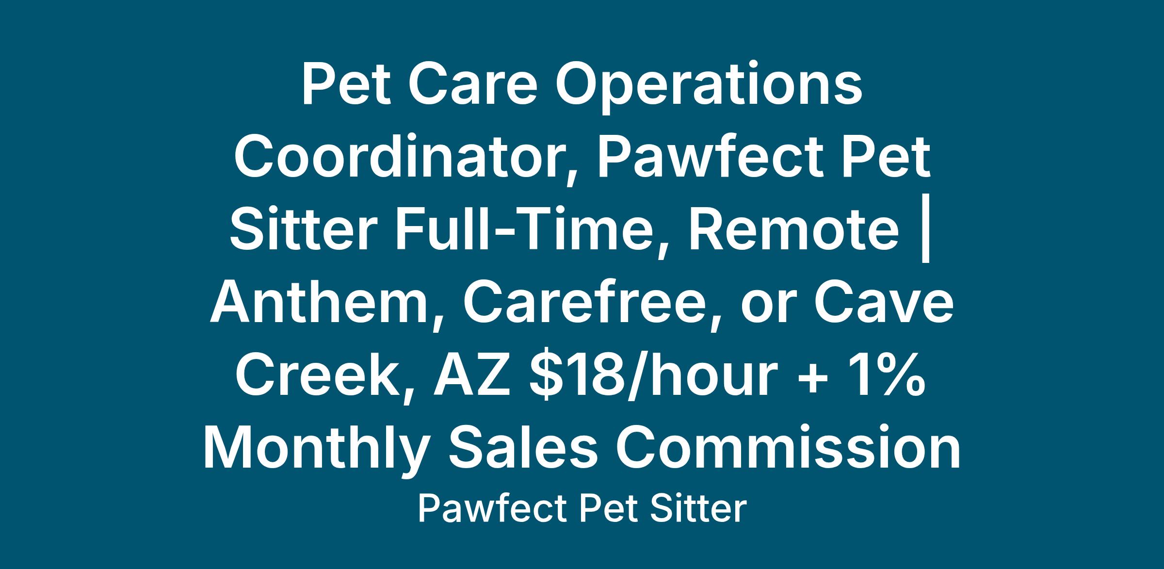 Pawfect Pet Sitter has been caring for pets and their people in the north Phoenix area since 2018. We're a professional, team-based pet care company built on reliability, clear communication, and high standards. We're looking for someone who loves pets, loves people, and thrives in a role where every day keeps you on your toes.