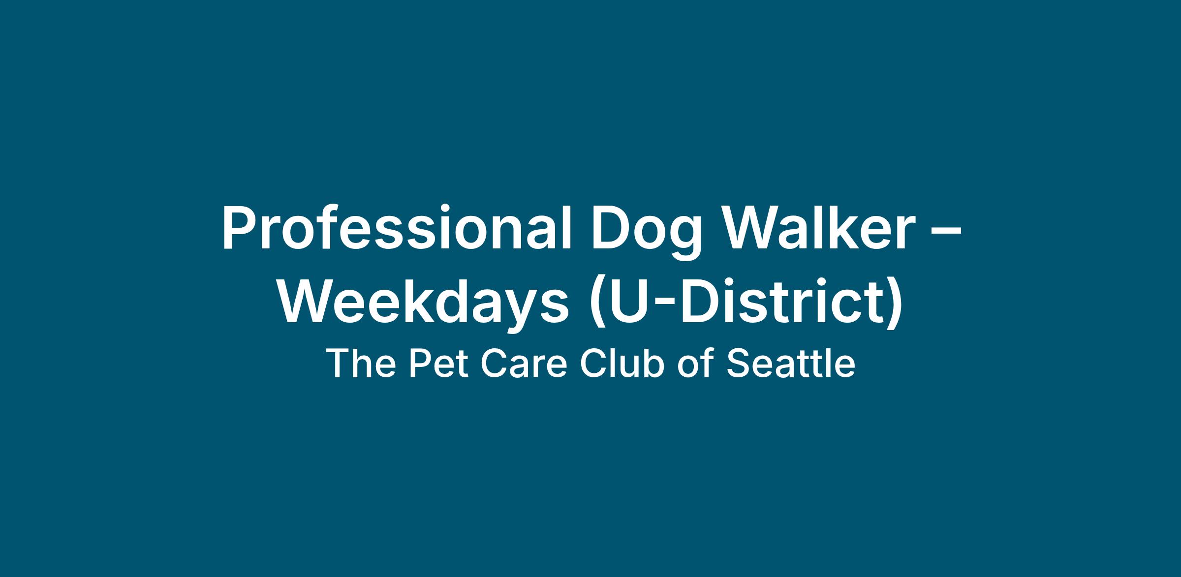 The Pet Care Club of Seattle is hiring a Professional Dog Walker to support our U-District services. We’re seeking candidates who take pride in showing up on time, following instructions, and building trust with clients and pets.