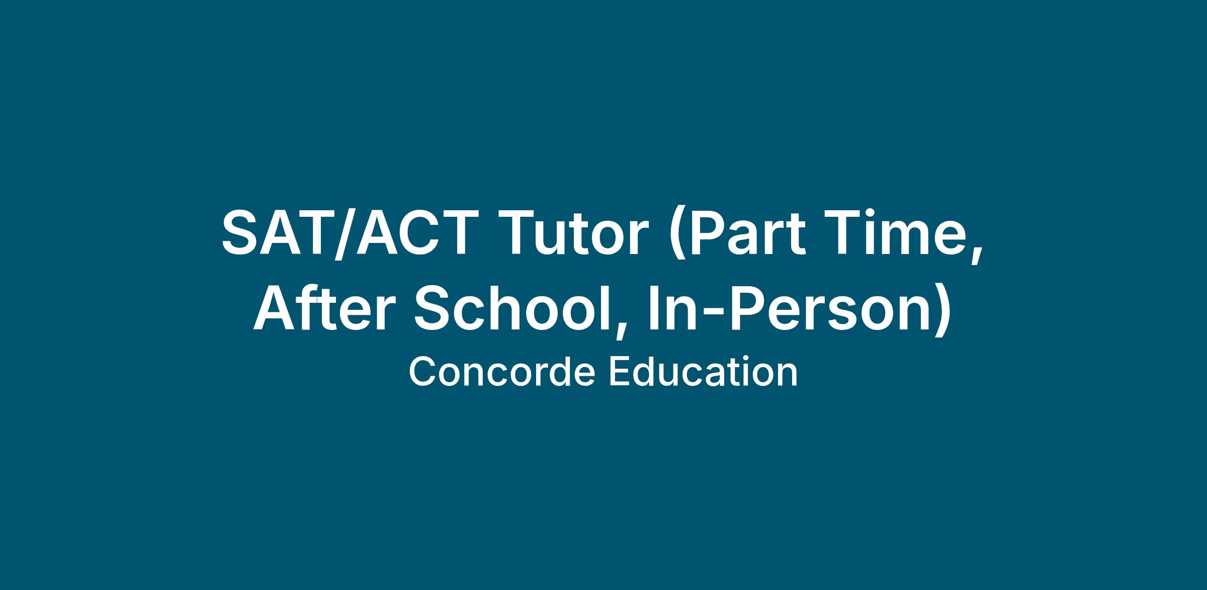 Concorde Education is seeking an engaging, student-centered SAT/ACT Tutor to provide targeted test preparation support for high school students. This role focuses on building the skills, strategies, and confidence students need to improve performance on the SAT and/or ACT (assignment dependent). Tutoring emphasizes content reinforcement, efficient problem-solving, and test-taking strategies, with regular practice and review routines aligned to student needs and site goals.
