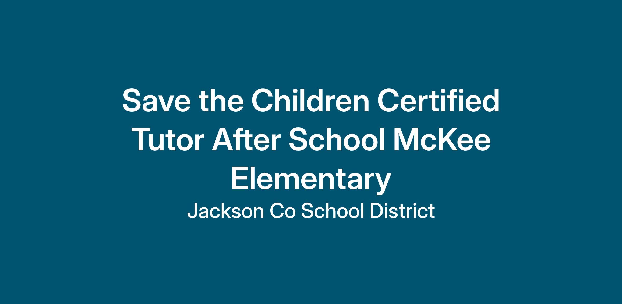 Save the Children Certified Tutor After School McKee Elementary