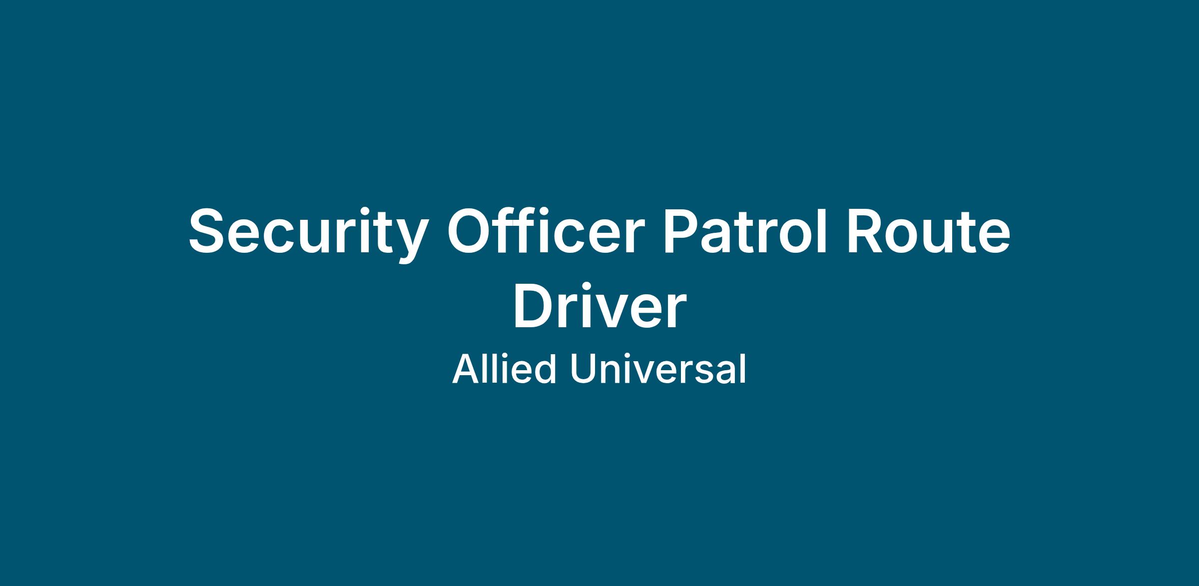 As a Security Officer Patrol Route Driver in Jacksonville, FL, you will serve and safeguard clients in a range of industries such as Transportation, and more. Join a leading team where flexibility meets opportunity. As a Part-Time Security Officer, you can build a schedule that works for you and explore new roles using our Claim a Shift platform. Learn more: aus.com/earnmore. Join Allied Universal as an Unarmed Patrol Officer in a dynamic transportation location, where you will conduct routine patrols, stay visible to help deter security-related incidents, and deliver outstanding customer service and communication. This is a driving post, offering the opportunity to support daily operations with agility, reliability, and integrity while working as part of a caring, team-focused culture.