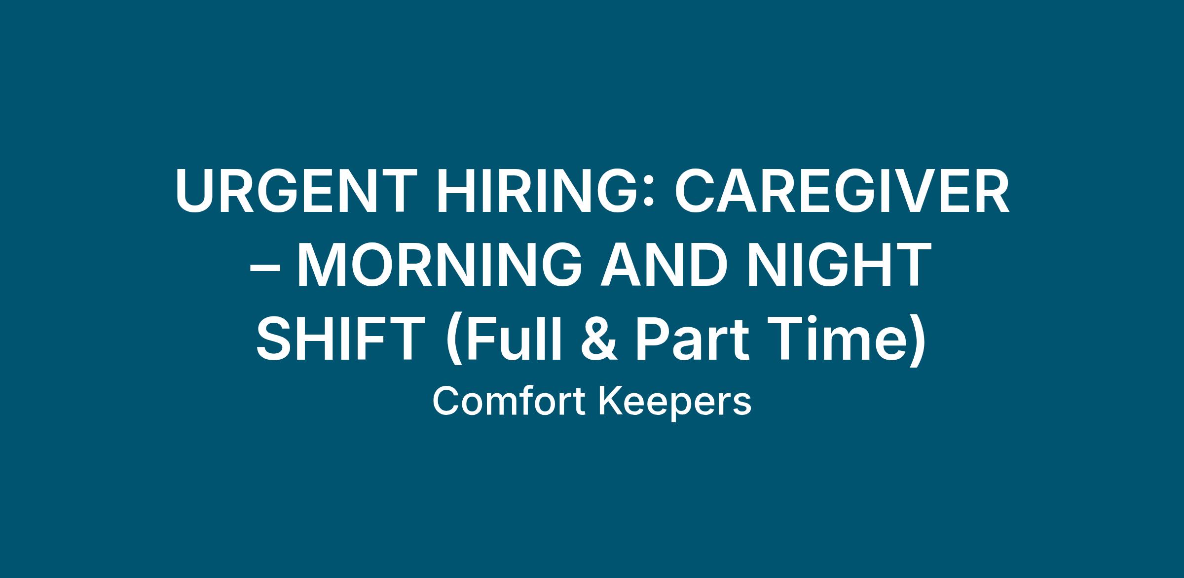 URGENT HIRING: CAREGIVER – MORNING AND NIGHT SHIFT (Full & Part Time)