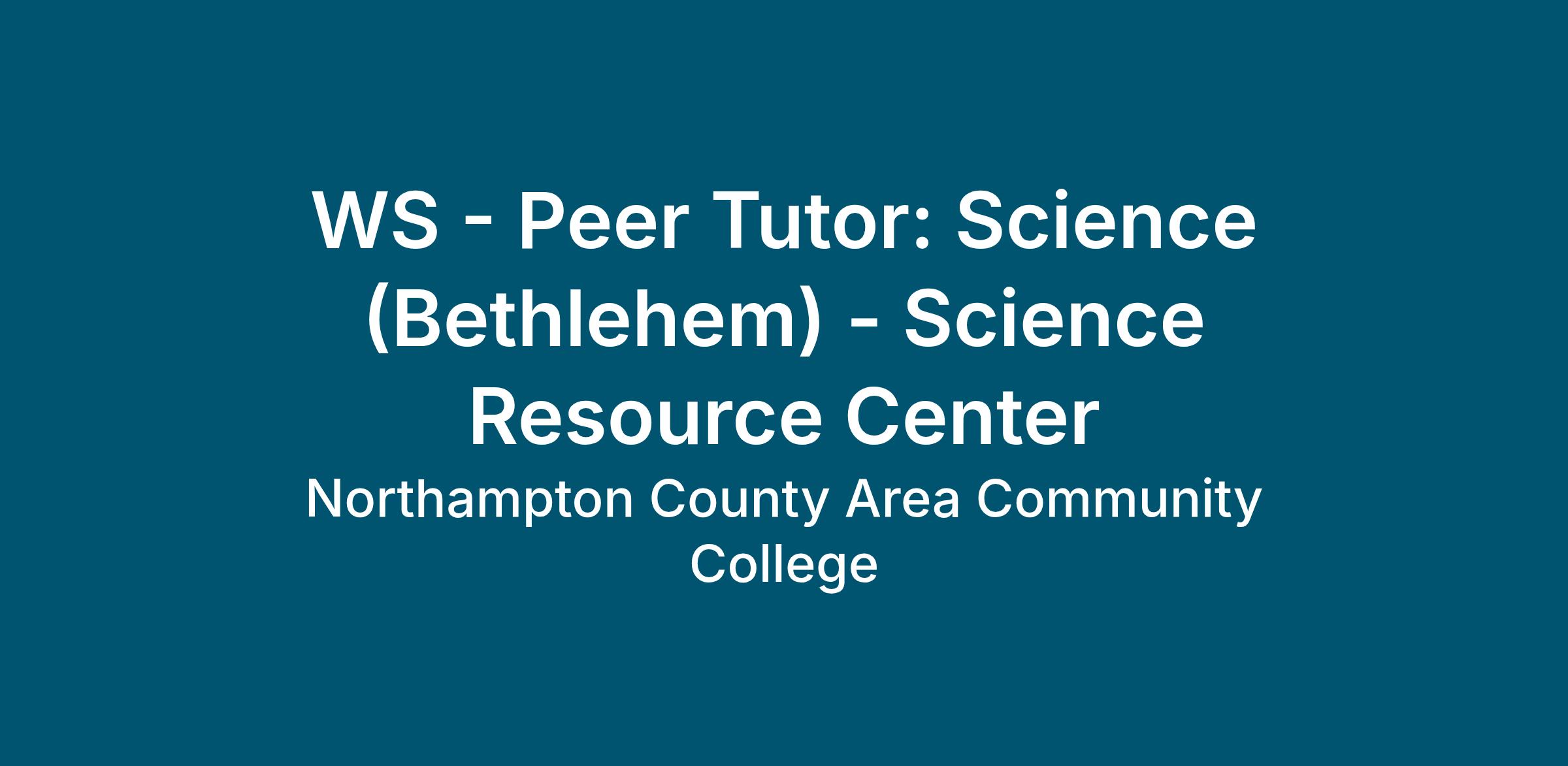 WS - Peer Tutor: Science (Bethlehem) - Science Resource Center~~~~~~~~~~~~~~~~~~~~~